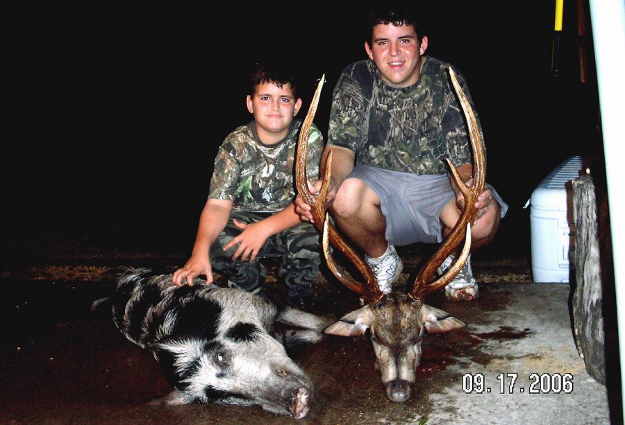 book a hunt, please contact John or Linda by calling 512-756-1918 If you leave a message we will call you back as soon as possible. Two very pleased youngsters from Louisiana with a large hog and trophy axis buck