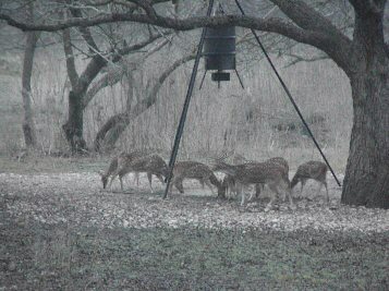 Hogs: Day or night hunt from stand only--NO DOGS OR 4-WHEELERS. You are welcome to bring your own "bait", and we maintain corn feeders, and have one lighted feeder for hunting hogs and some approved "varmints" at night.