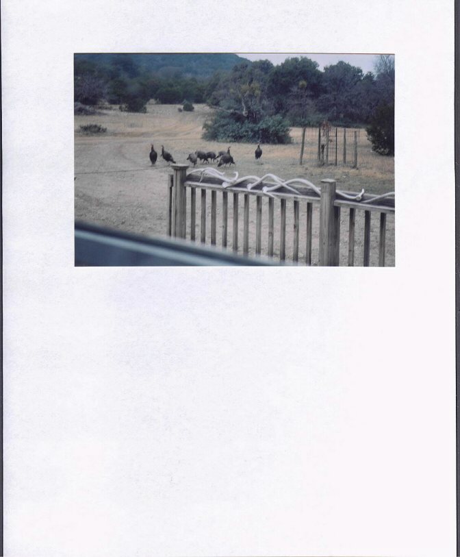 Wild game frequently seen includes native whitetail deer, Rio Grande turkeys, wild hogs (Russian and feral),as well as exotic Axis deer, Aoudad sheep, as well as some other exotics. Several record book Axis bucks