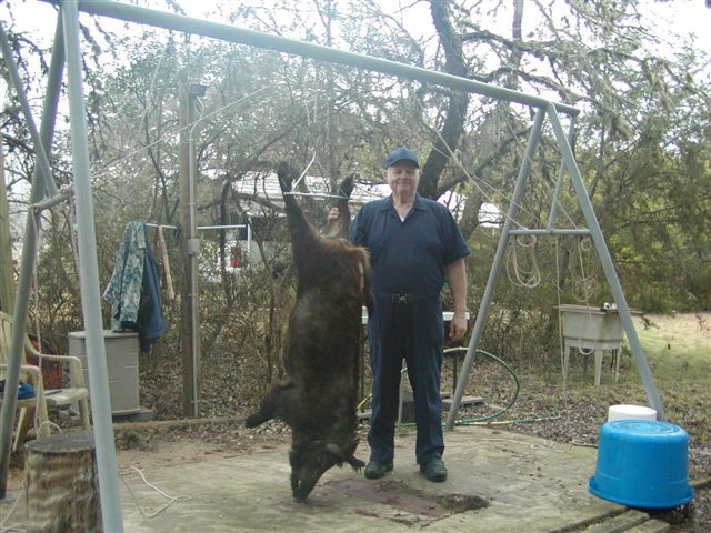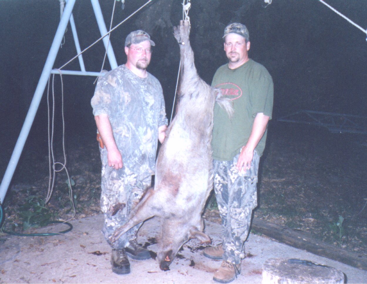 Where else will you find a Regular Season Whitetail Hunt for $850 which includes 3 days hunting, a buck and doe, 2 turkeys, free hogs, as well as lodging, AND substitution of axis does for your whitetail??? If you are into exotics like Axis Deer or Aoudad, among others, there is a $550 Exotic Hunt fee, where you pay off the Price List for whatever you may take; this base price also includes lodging, free hogs, and 3 days of hunting. THE BEST, MOST ECONOMICAL, NO-FRILLS DAY HUNT PACKAGES YOU WILL FIND ANYWHERE! If you are looking for a "cheap" axis hunt, this might be the one you are looking for. Many people desire Meat Hunts for axis does, but we only hunt axis does from July 1 to February 28 each year because of many small, dependent fawns on the ground at that time. You may take axis does in season or axis bucks, or any exotics, in addition to Whitetail Deer, with a kill fee from our Exotic Price List. Unfortunately for our environment, feral hogs are extremely numerous, and are included free in every hunt package throughout the year. Hunting strictly for hogs is considered to be an Exotic Hunt, with a $450 hunt fee which includes use of the cabin lodging. You are highly encouraged to take hogs, as many as you want! Check our various HUNTING PACKAGES below for more details.
