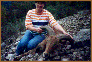 truly ugly Russian Boar taken on Thanksgiving Day! You never can tell who will bag an aoudad ram! Very nice