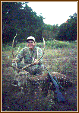 A Beautiful Gold Medal Axis Buck in the Pecan Bottom, September. Photo by Jim Payne, Victoria, TX